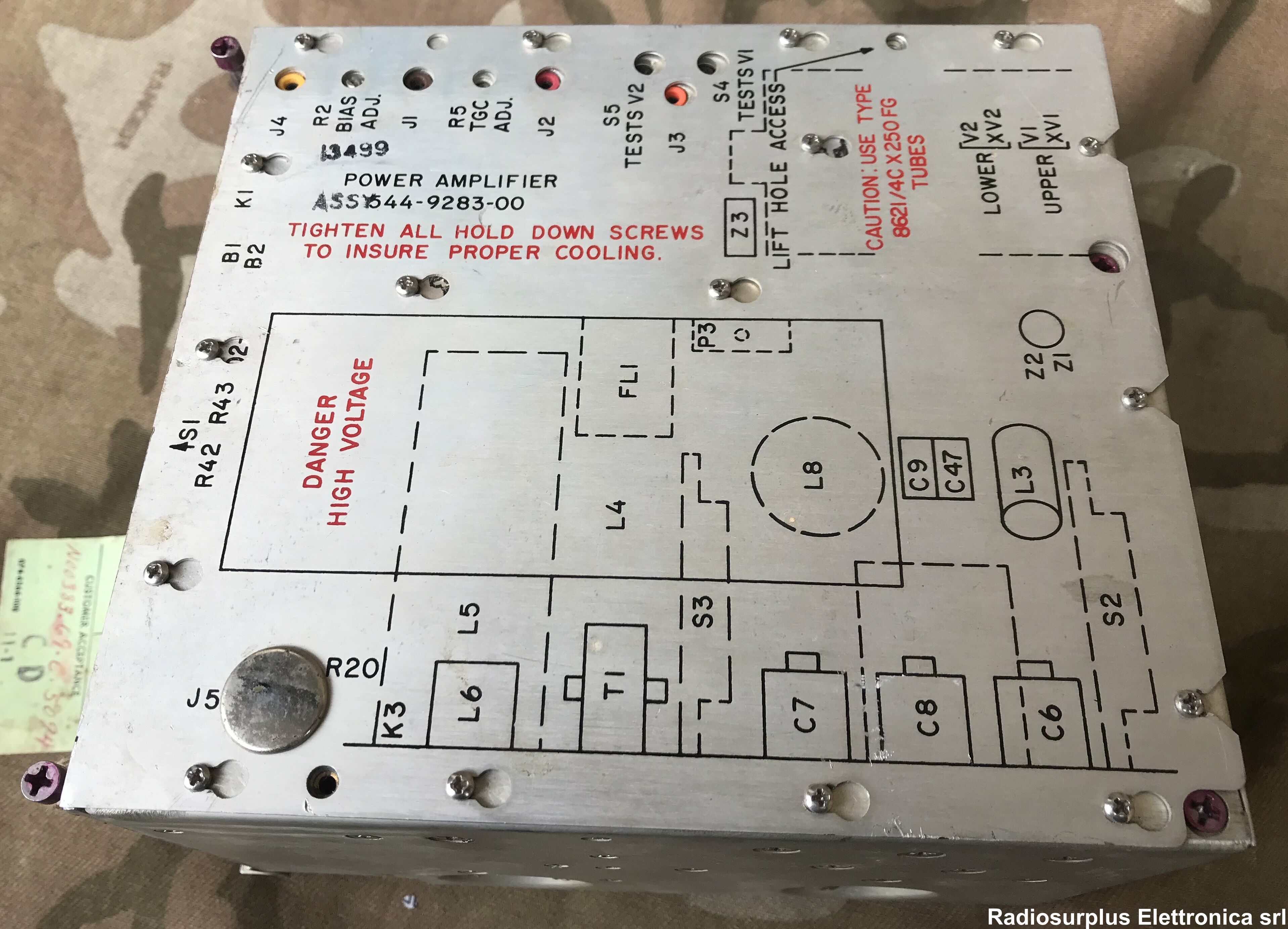 Al suo interno bobine variabile, consensatori per H.T. e due valvole 4CX-250